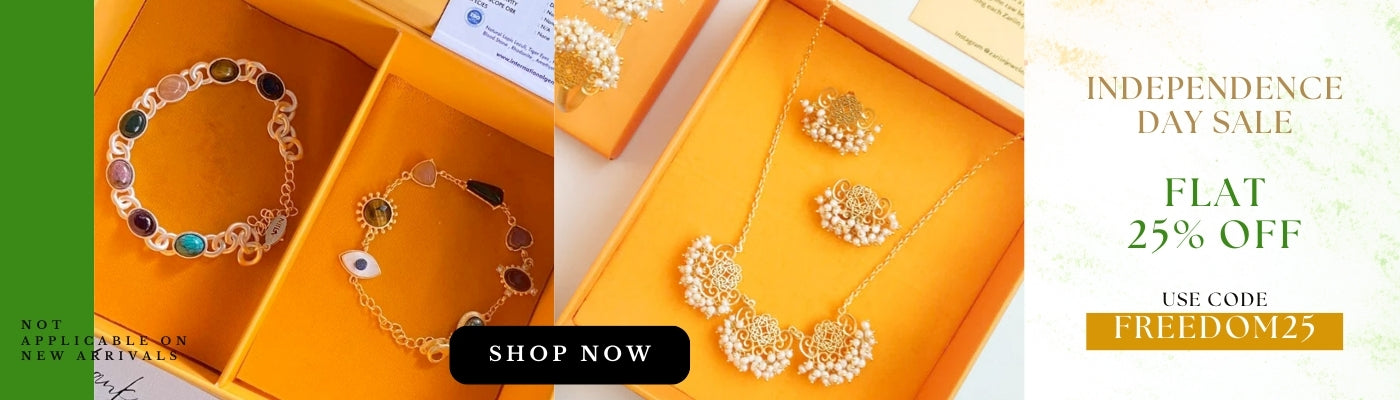 Ans - You can buy a wide range of jewellery from Zariin. The items include everyday jewellery, traditional jewellery, wedding jewellery, bridal jewellery, party jewellery, gemstone jewellery, healing jewellery, etc. You can also find men’s jewellery and gift sets at Zariin.