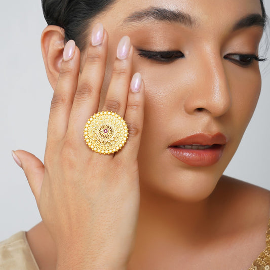 Antique Petals Floral Statement Ring