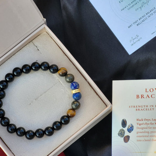 Strength in Love Beaded Bracelet for Men - Black Onyx, Pyrite, Lapis Lazuli and Tiger’s Eye
