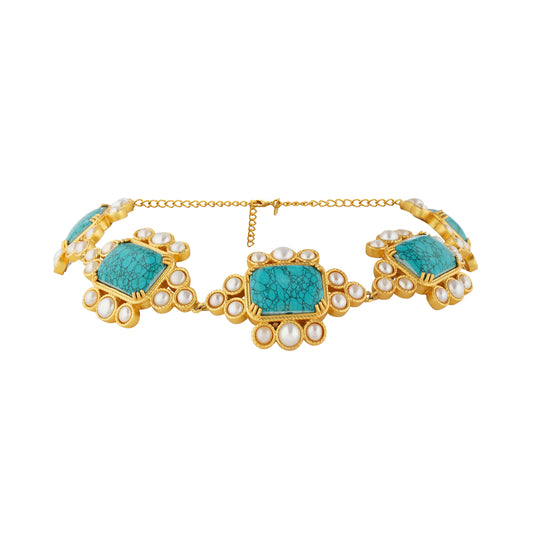 The liberal use of Pearls along with Turquoise, Malachite, Garnet and Baroque Pearls in 22kt gold plated jewellery which is extravagant and statement making truly imparts a luxe factor to each piece.