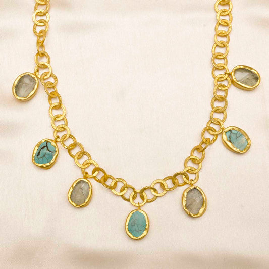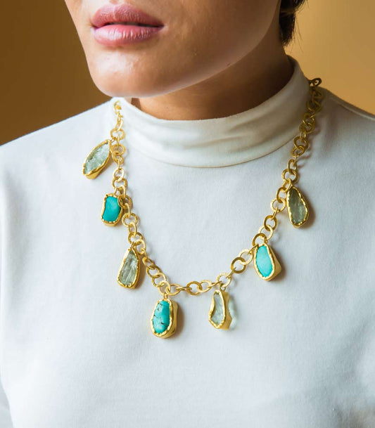 A Touch of Green Chalcedony Stone Gold Necklace