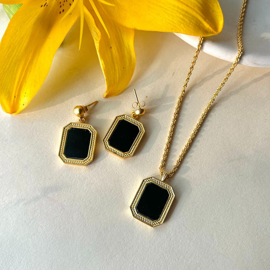 True Essence Pendant Necklace and Stud Earrings Set - Black Onyx