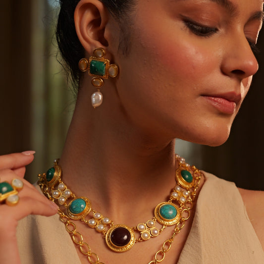 Our line of 22kt gold-plated statement jewellery comes with the promise of purity and good intention. We use 100% authentic gemstones in their organic, raw, unpolished, and uncut form to give you unmatched quality.