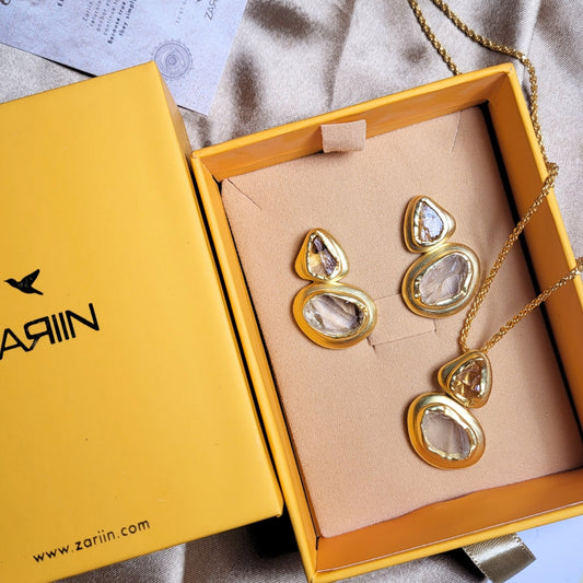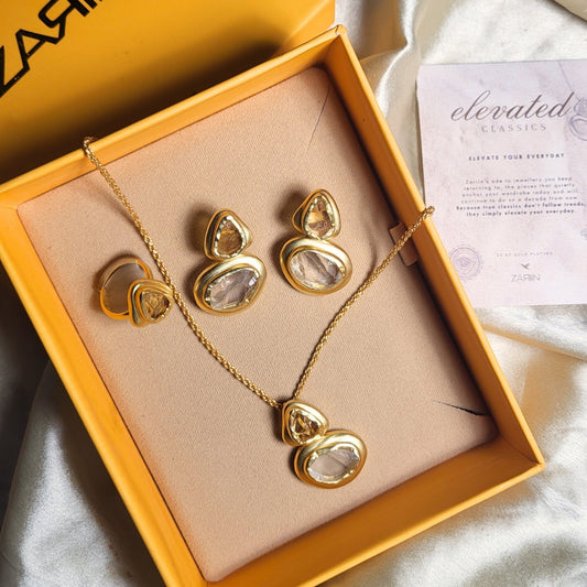 Finished in Zariin’s signature 22kt gold plating, each piece carries the rich glow of gold while remaining perfectly suited for everyday wear.