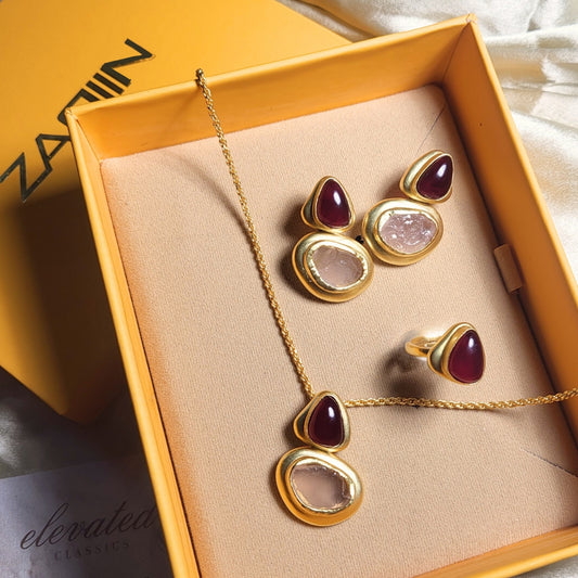 Poised Tumbles Gift Set with Garnet and Rose Quartz