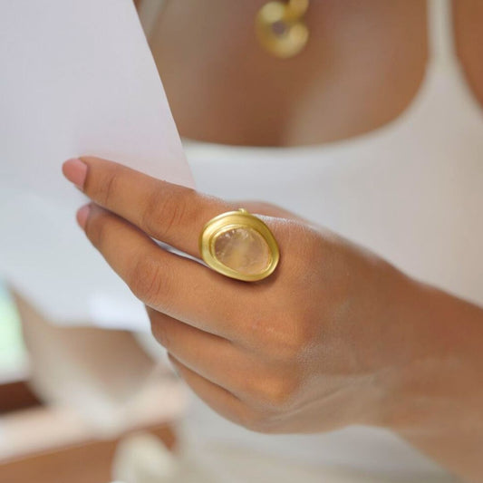 Crafted in 22kt gold plating and adorned with vibrant natural gemstones, the collection is designed for the woman who expects more from her everyday staples. From a morning boardroom meeting to a spontaneous dinner out, these earrings, necklaces, and rings act as a subtle visual reset—the finishing touch that instantly elevates an outfit.