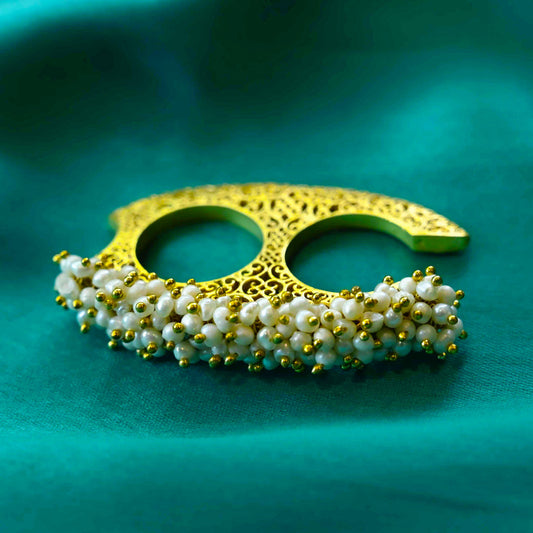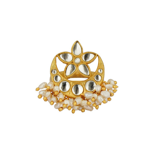 Chaand Phool Ring with Mirror Polki and Pearls
