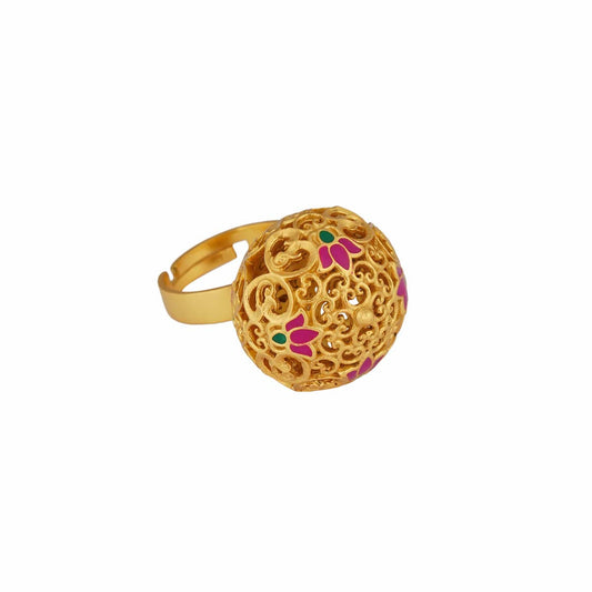 Lotus Globe Statement Ring in Pink Enamel