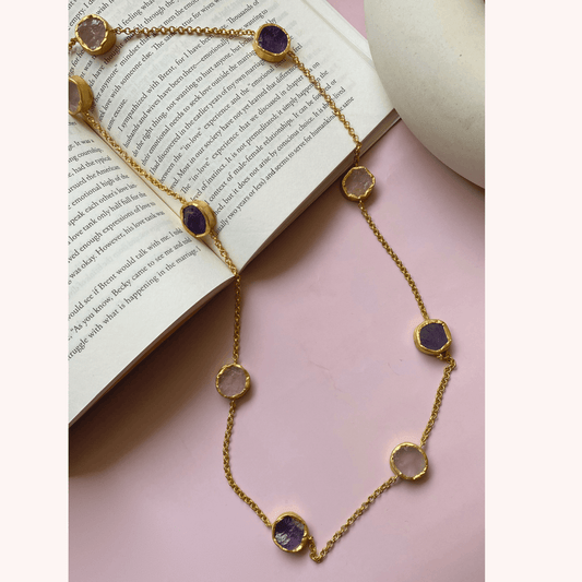 The Alternating Amethyst Rose Quartz Gold Necklace