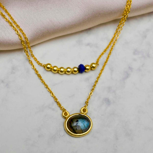 Sky Of Dreams Blue Topaz Baroque Pearl & CZ Necklace