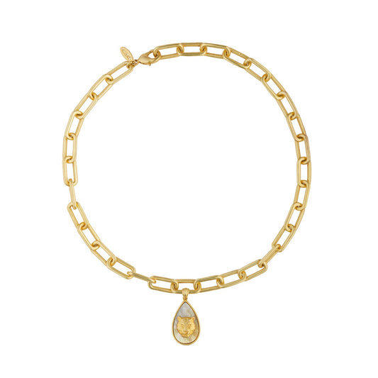Tigris Charm Tiger Link Necklace with Mother of Pearl