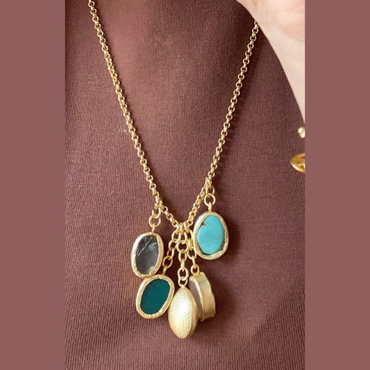 A Tryst With The Wrist Rose Quartz Fluorite Turquoise Gold Bracelet