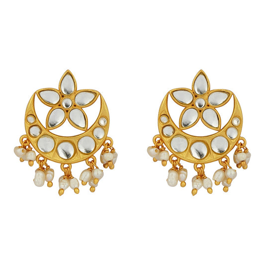 Chaand Phool Stud Earrings with Mirror Polki and Pearls