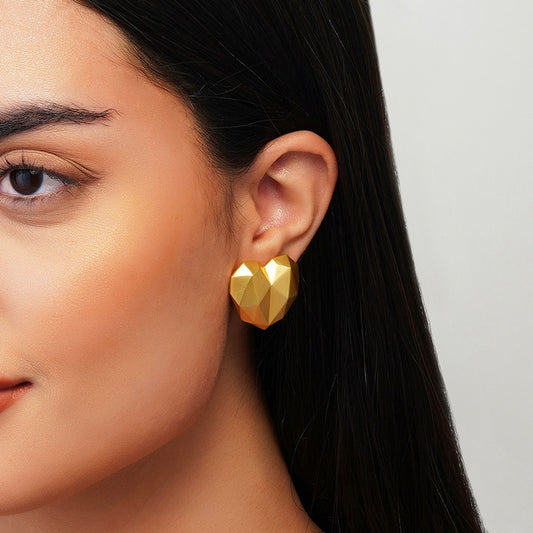 This three-dimensional origami heart-shaped gold stud earrings for girls are popular among those who want something simple yet elegant. These stud earrings designs stand out due to their minimalist and classy design. They are so simple that you can even go to bed wearing them. They are perfect for regular outfits and add a touch of sophistication to your look.