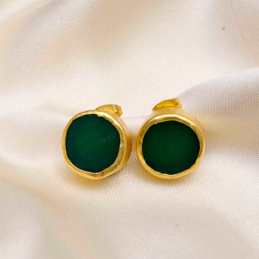 The Spirited Gold Stud Earrings with Green Chalcedony