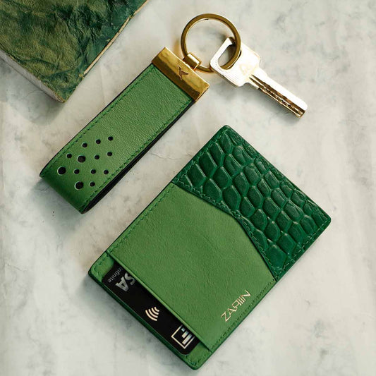 Zariin has thoughtfully designed a card holder with artisanal leather. The utility accessory has been designed to accommodate cards in front, one behind and a middle slot to put your bills in.