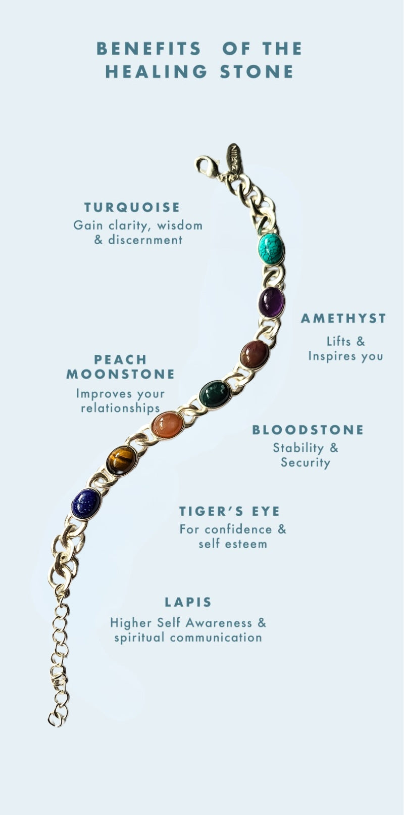 The necklace is made with 7 healing gemstones that are proven to infuse positivity, joy and abundance, and bring alignment of chakras in our body.