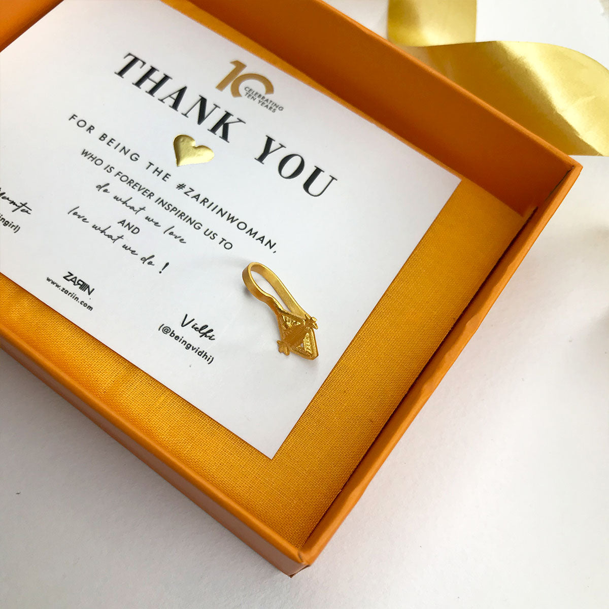 Nose clips are an integral part of Indian accessorising and this accessory brings instant attention to your face. Zariin gives it a very modern vintage makeover with a textured all gold motif in an interesting shape which will look extremely stylish. The all gold look is traditional yet modern and will work well with most of the face shapes. THe 22kt gold dipped pin is a refreshing design. This nose clip does not need a piercing.
