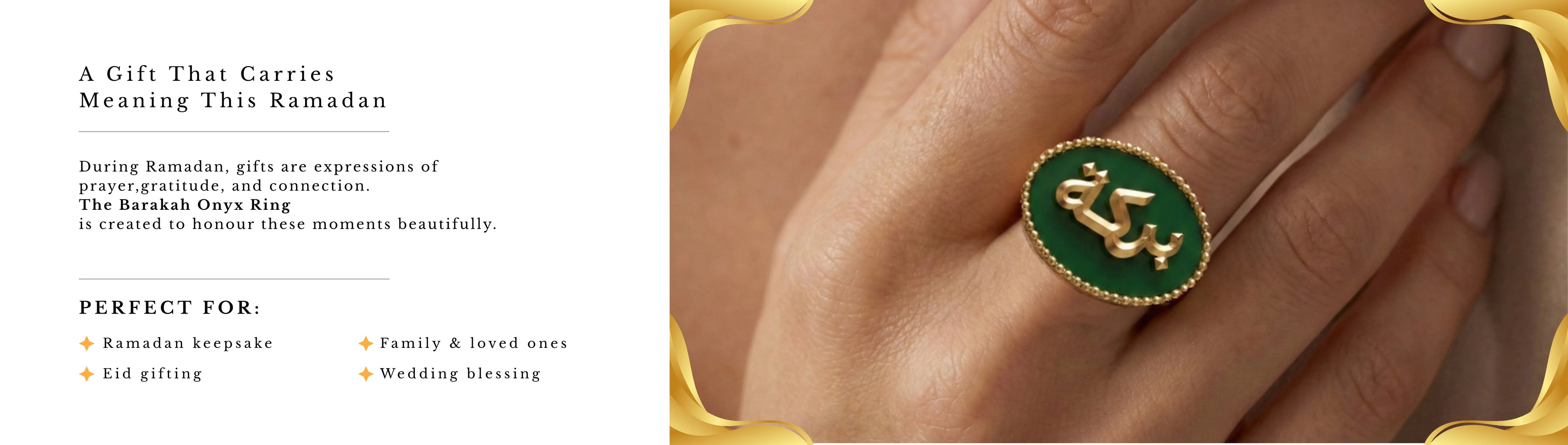 Yes. The Barakah Onyx piece is thoughtfully created as a meaningful gift symbolising blessings, gratitude, and prosperity, making it especially appropriate for Ramadan and Eid gifting.