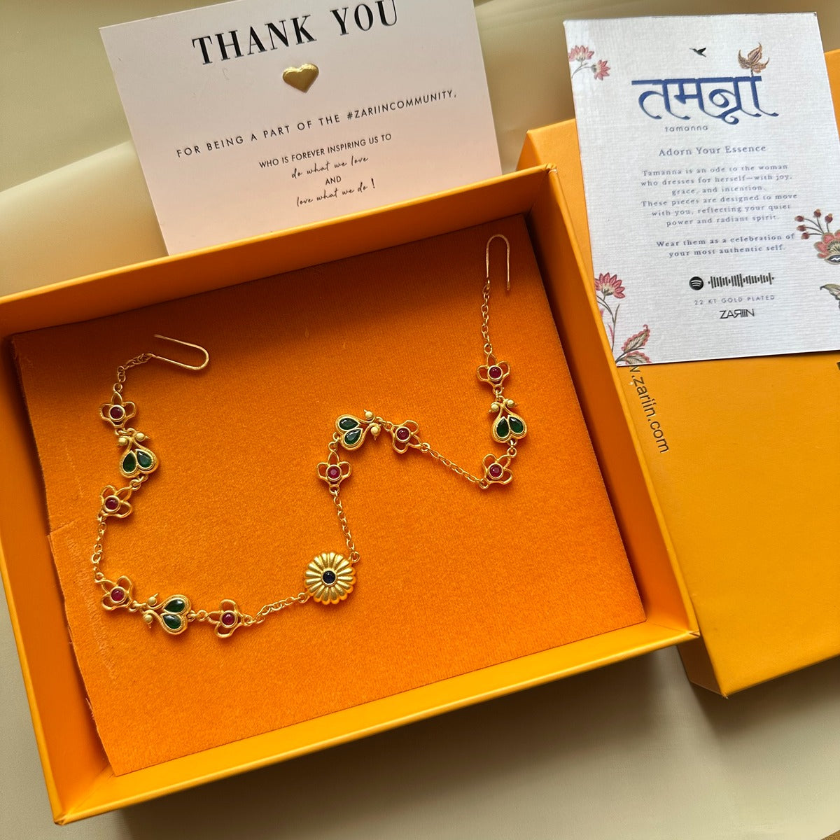 Each 22kt gold-plated piece is made for you, designed to celebrate and complement your unique essence. In this vibrant era, the power to define "getting festive ready" rests entirely with you. Gone are the days of jewellery that weighs in kilos—pieces you felt obligated to wear, trapped by investment, needing constant justification. The Zariin "Tamanna" collection is crafted for this very freedom.