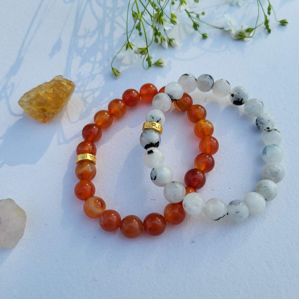Bracelet Set for Reproductive Health or PCOD - Moonstone and Carnelian