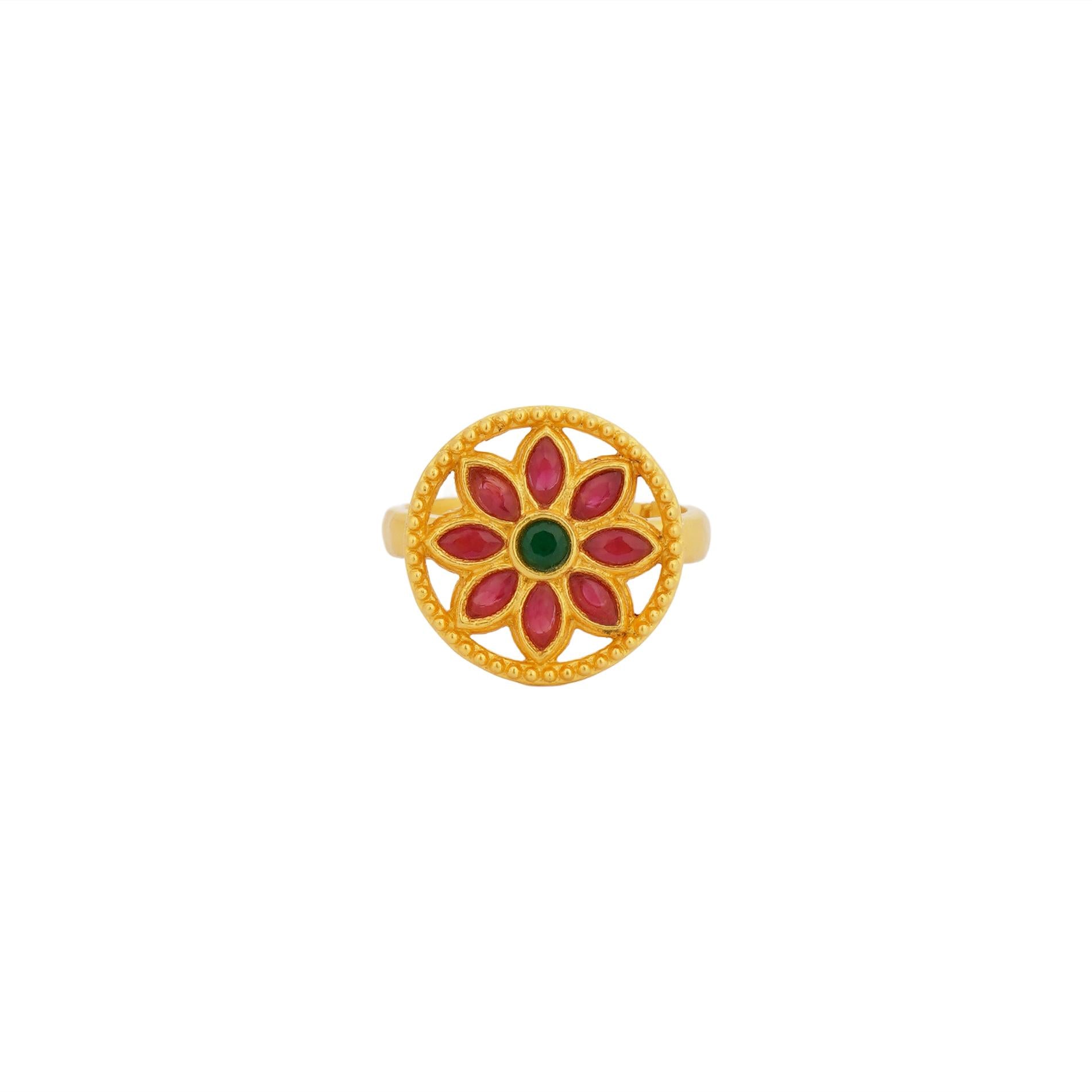 A ethnic,bold and culturally rooted traditional ring that finishes your festive look to perfection. It lends a perfect finishng touch to your attire and pairs well with matching earrings from the collection.