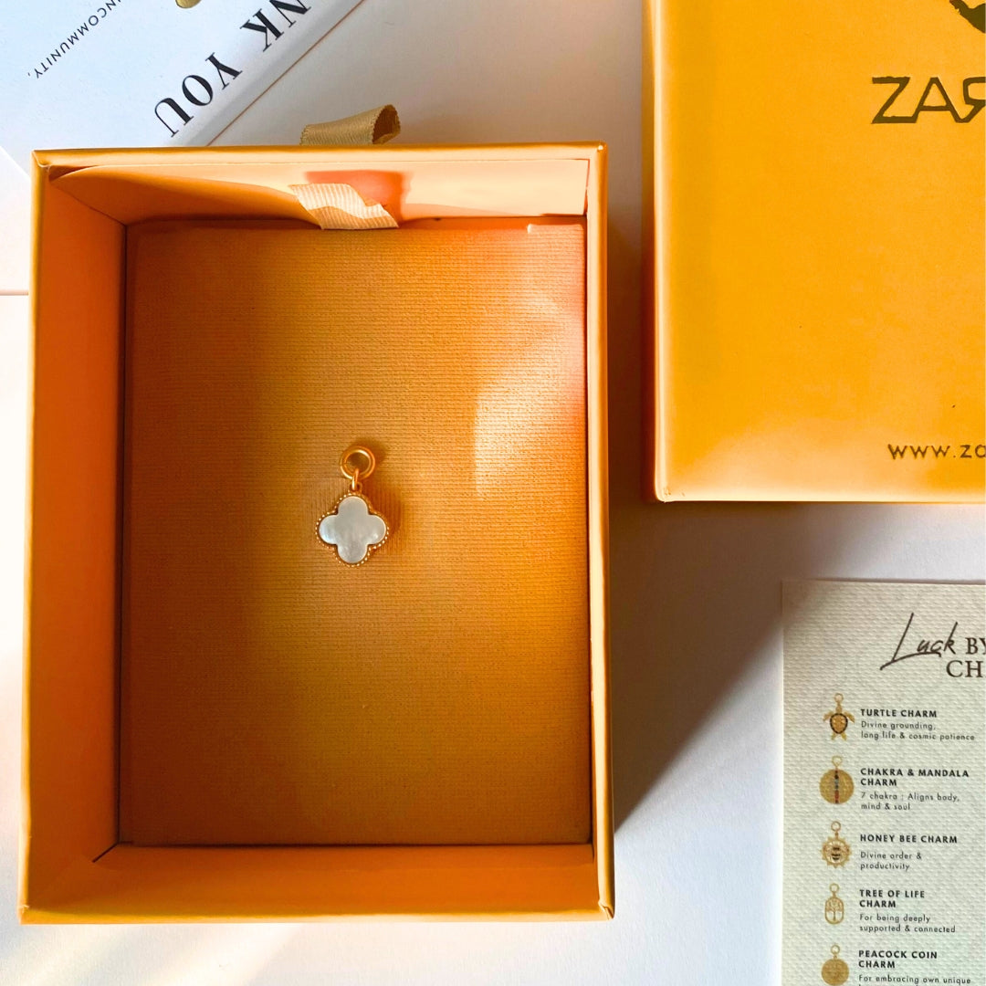 The Luck by Charms collection is Zariin’s personalised take on jewellery. It allows you to create your own charm necklace or bracelet by mixing and matching meaningful charms that resonate with your journey, beliefs, and style.