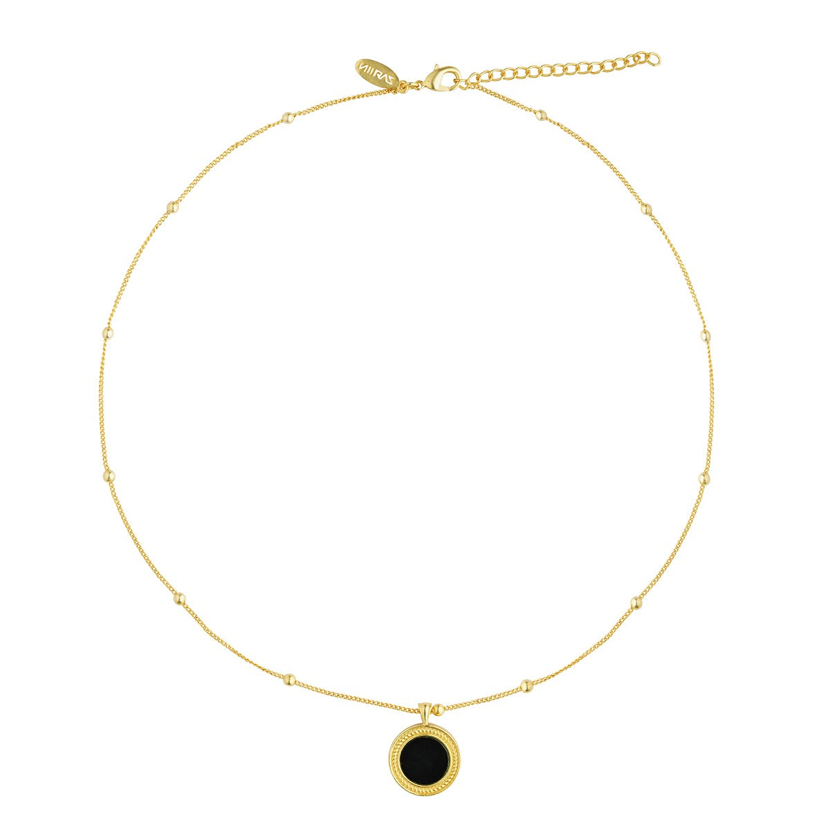 Discover the allure of this 22kt gold plated, round shaped pendant necklace that harmonises with powerful properties of Black Onyx renowned for its protective and strengthening qualities. Harness its grounding energies and the transformative power of Black Onyx which is elegantly complemented by a dotted chain in luxurious gold plating. Whether worn as a fashion statement or a mindful accessory, tap into its vibrational properties and carry its protective energies with you throughout the day.