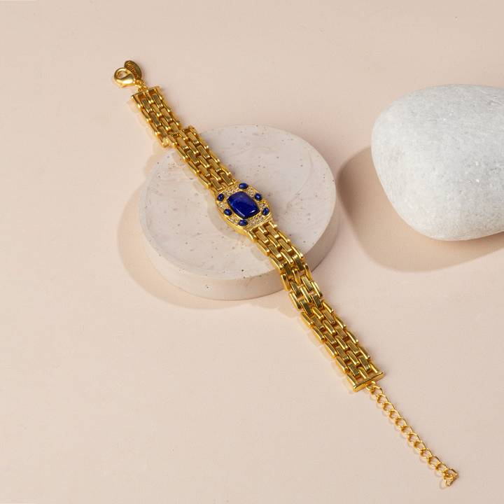 This 22kt gold-plated bracelet features Lapis Lazuli, a stone known for its calming properties that help alleviate anxiety. In today’s fast-paced world, external pressures such as constant connectivity, social media, and the rapid news cycle can heighten stress, leading to both mental and physical health challenges.