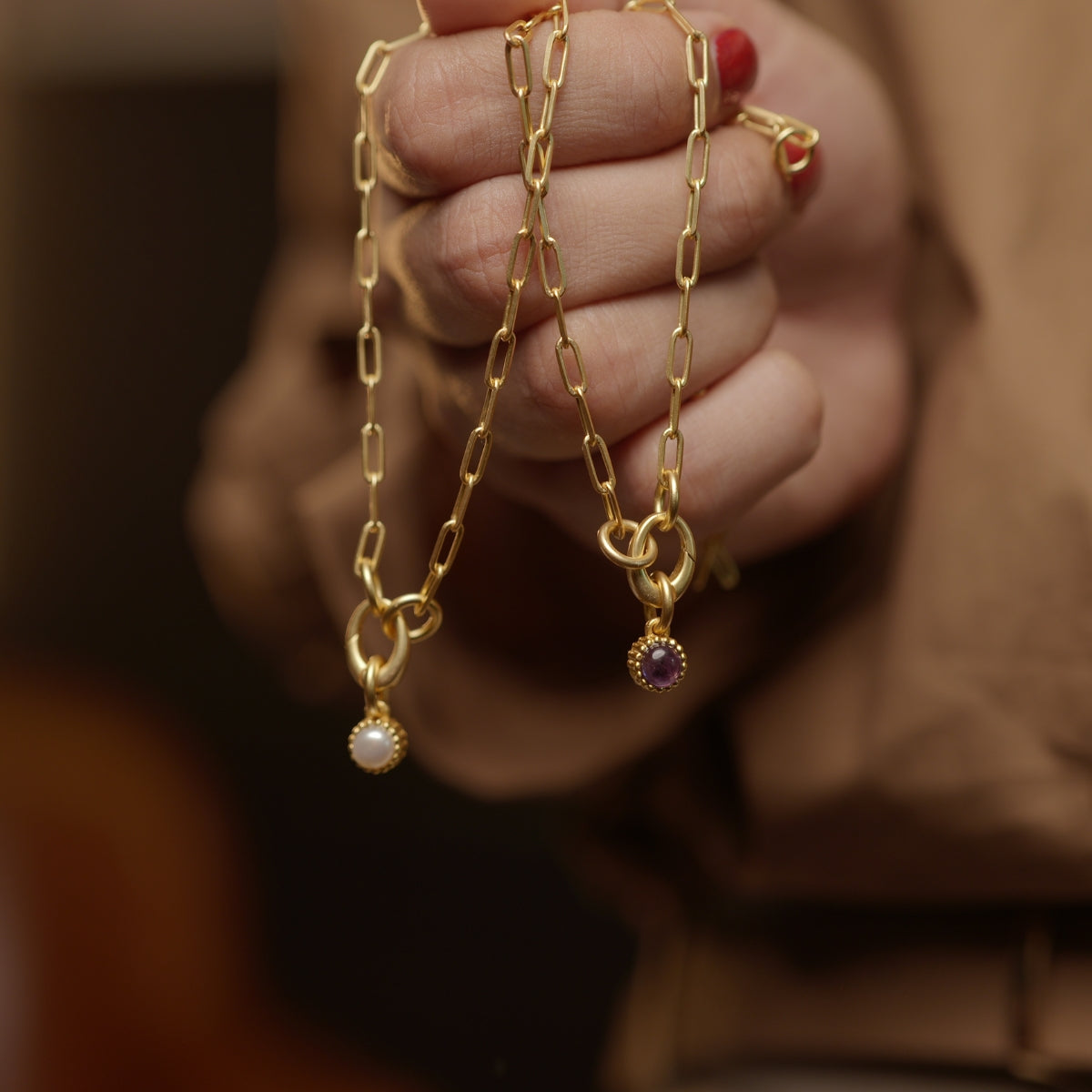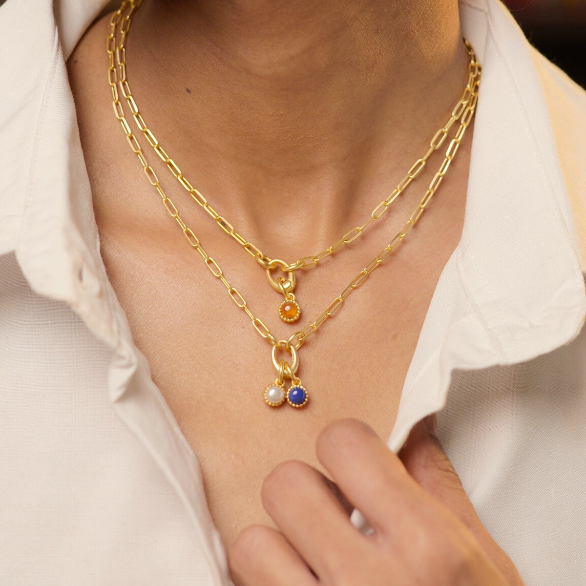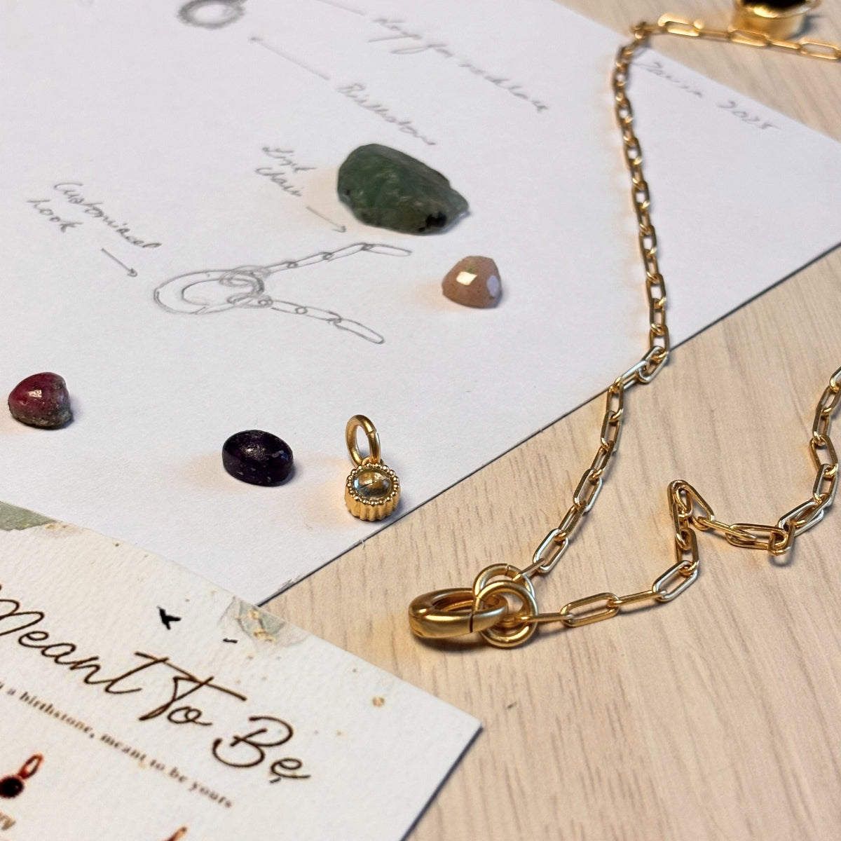 Yes! The “Meant To Be” necklace is customisable with up to three charms. Choose your own birthstone or combine it with those of your loved ones — a partner, child, or friend — to create a personalised charm necklace that represents the energies and relationships that define you.