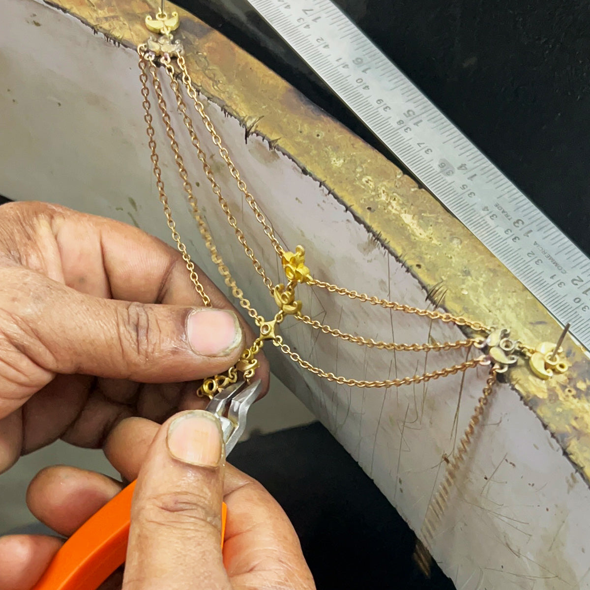 Each piece is a testament to the age-old artistry of handcrafted Indian jewellery and timeless Indian motifs – chaand, peacock, florals, and filigree – reimagined with a contemporary Zariin twist.. Meticulously brought to life by skilled artisans, it reflects generations of mastery, precision, and an unwavering attention to detail.