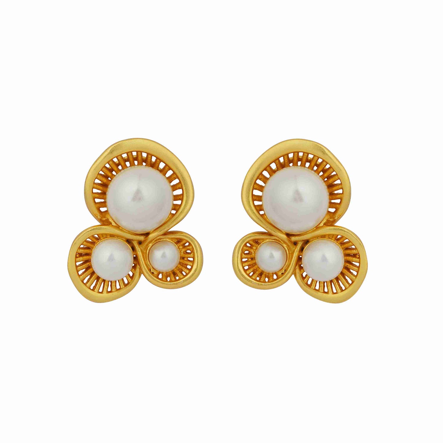 The most coveted Pearls jewellery set ever, this set scores high on versatility. Can be paired perfectly with a casual look, a cute black dress dress, or even your sweater outfits. This is a modern pair with pearls set in a 22kt gold dipped oyster inspired formation. Pearls are great way to add some freshness to your outfits. The ivory and gold combination lend a modern update to a classic timeless vibe.
