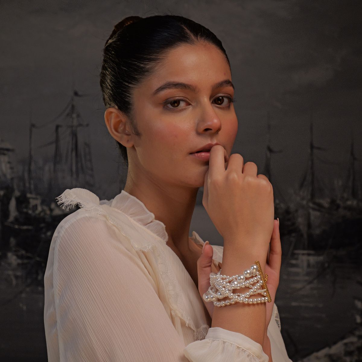 If you have a fetish for statement pearls, then this multistrand pearl bracelet is a must have! What makes the multilayered bracelet stand out are the strands of pearls of different sizes making it eclectic yet sophisticated. Pearls make the best travel jewellery owing to its timeless elegance, versatility and practicality and with this statement bracelet you can truly make a hard to miss impression. Perfect glam up ption for the simplest to the most refined outfits.