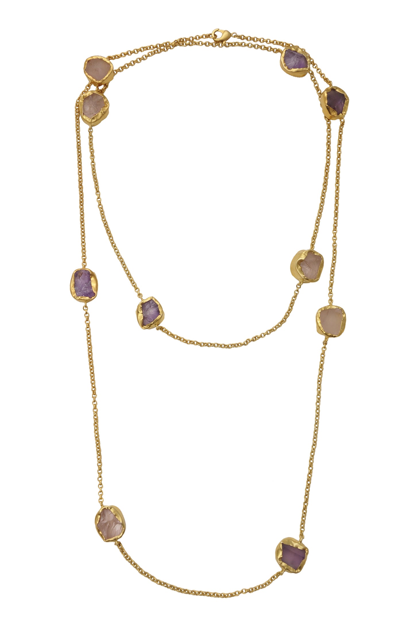 The Alternating Amethyst Rose Quartz Gold Necklace