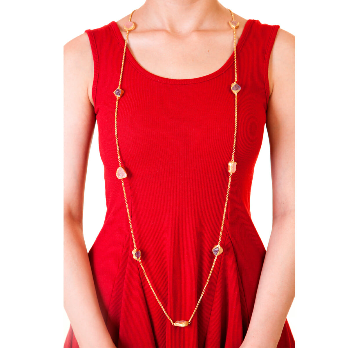 22kt gold plated necklace with amethyst and rose quartz