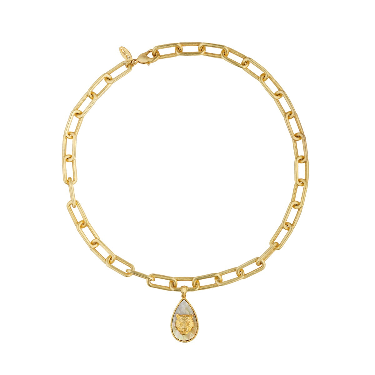 Tigris Charm Tiger Link Necklace with Mother of Pearl